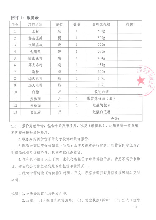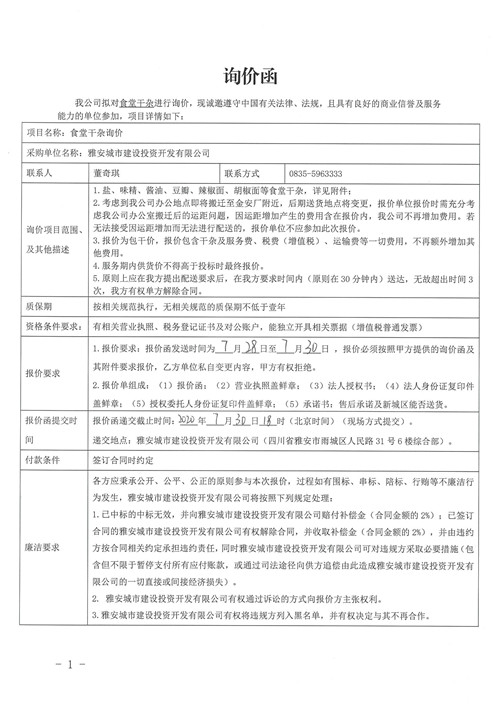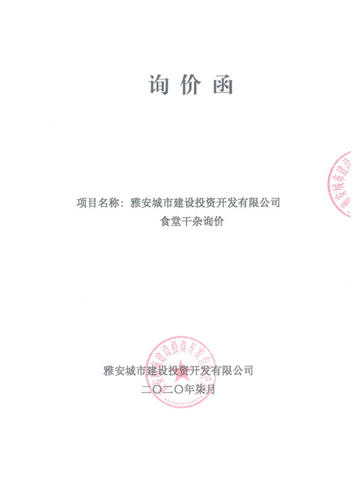 雅安城市建設(shè)投資開發(fā)有限公司食堂干雜詢價(jià)函