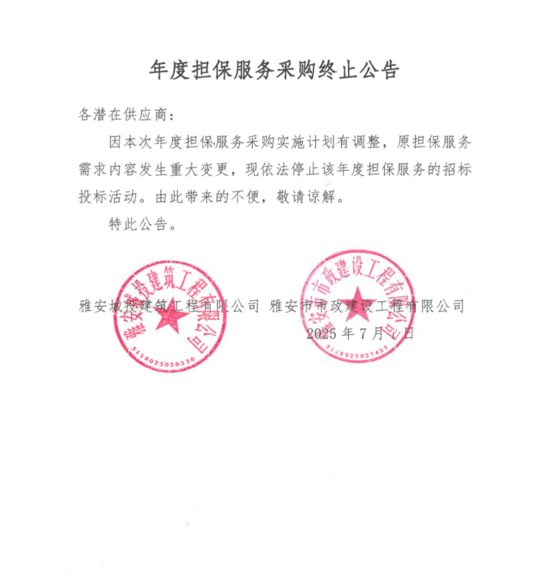 年度擔(dān)保服務(wù)采購終止公告